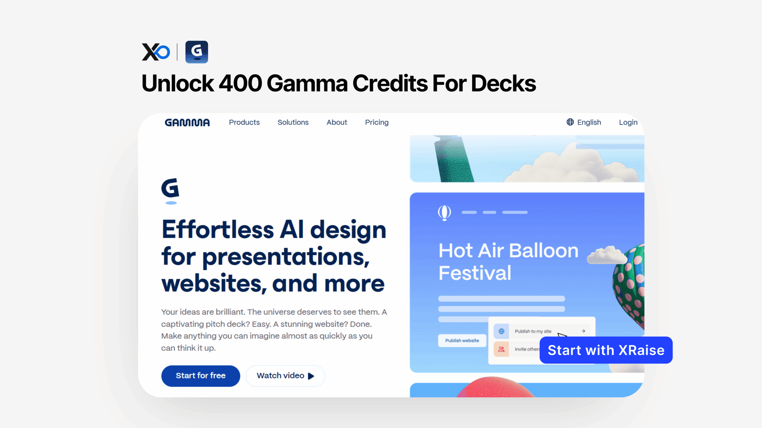 Apply for Gamma to unlock Gamma for Startups and use 400 free credits to generate decks, docs, pages, and social assets faster. Start on XRaise first, then use Gamma’s site only to confirm official terms.
