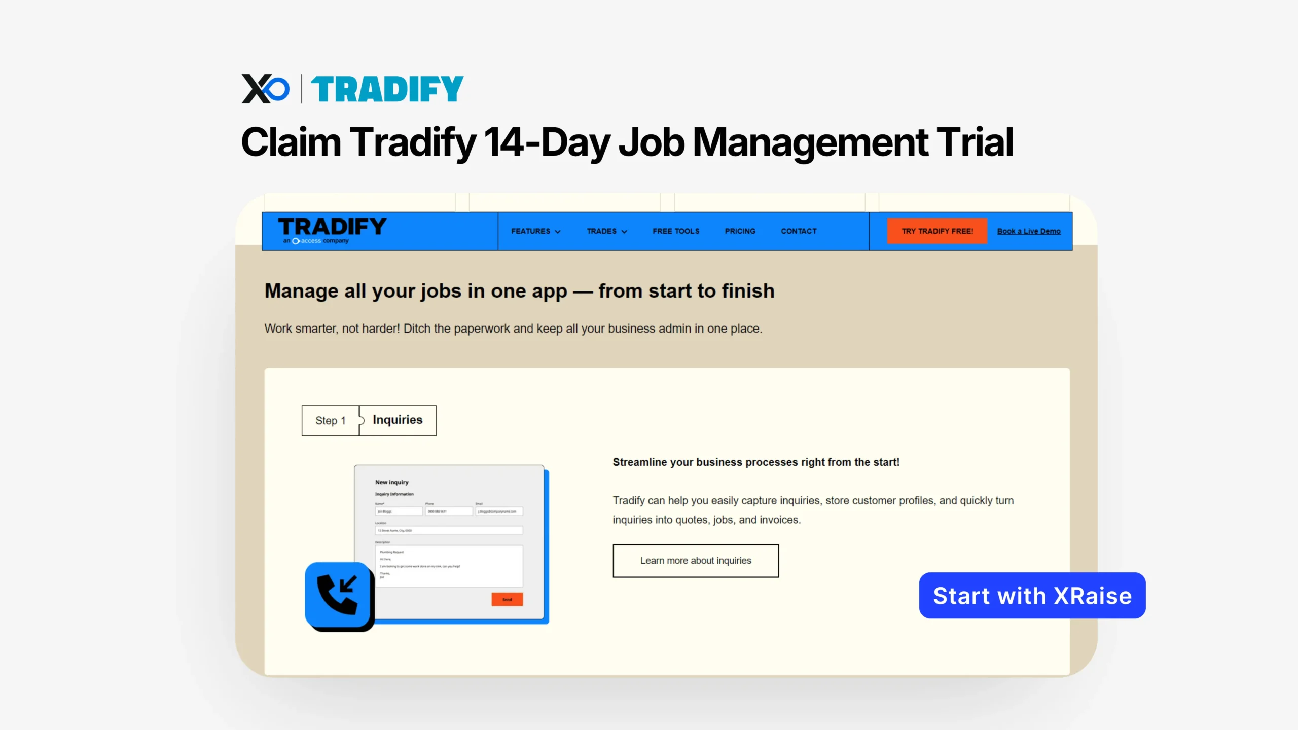 Claim your Tradify Free Trial on XRaise, Then use the official site only to confirm terms and feature details.