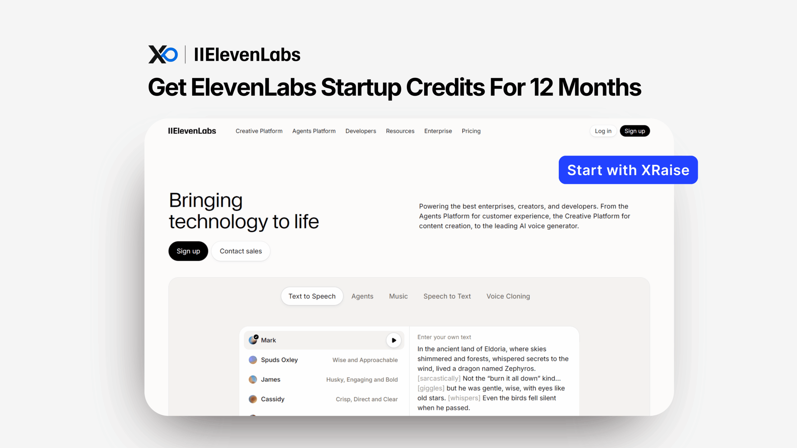 ElevenLabs credits for startups gives eligible startups 12 months free access with 33,000,000 characters. Use it to ship and validate real voice workflows before TL;DR