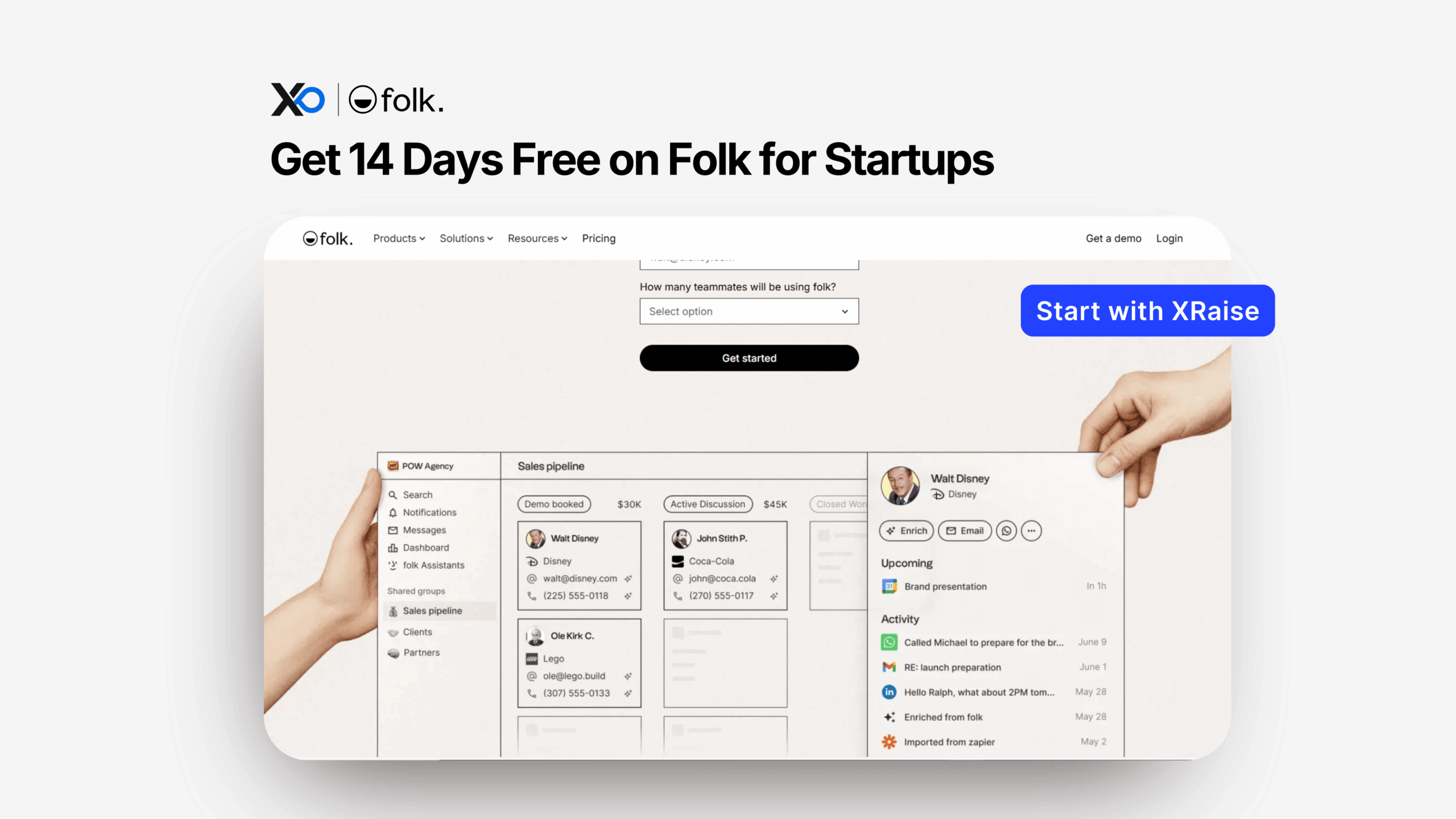 There’s also a folk for Startups perk through XRaise: a 14-day free trial intended to let early-stage teams test the full product in real workflows before committing to a paid plan.