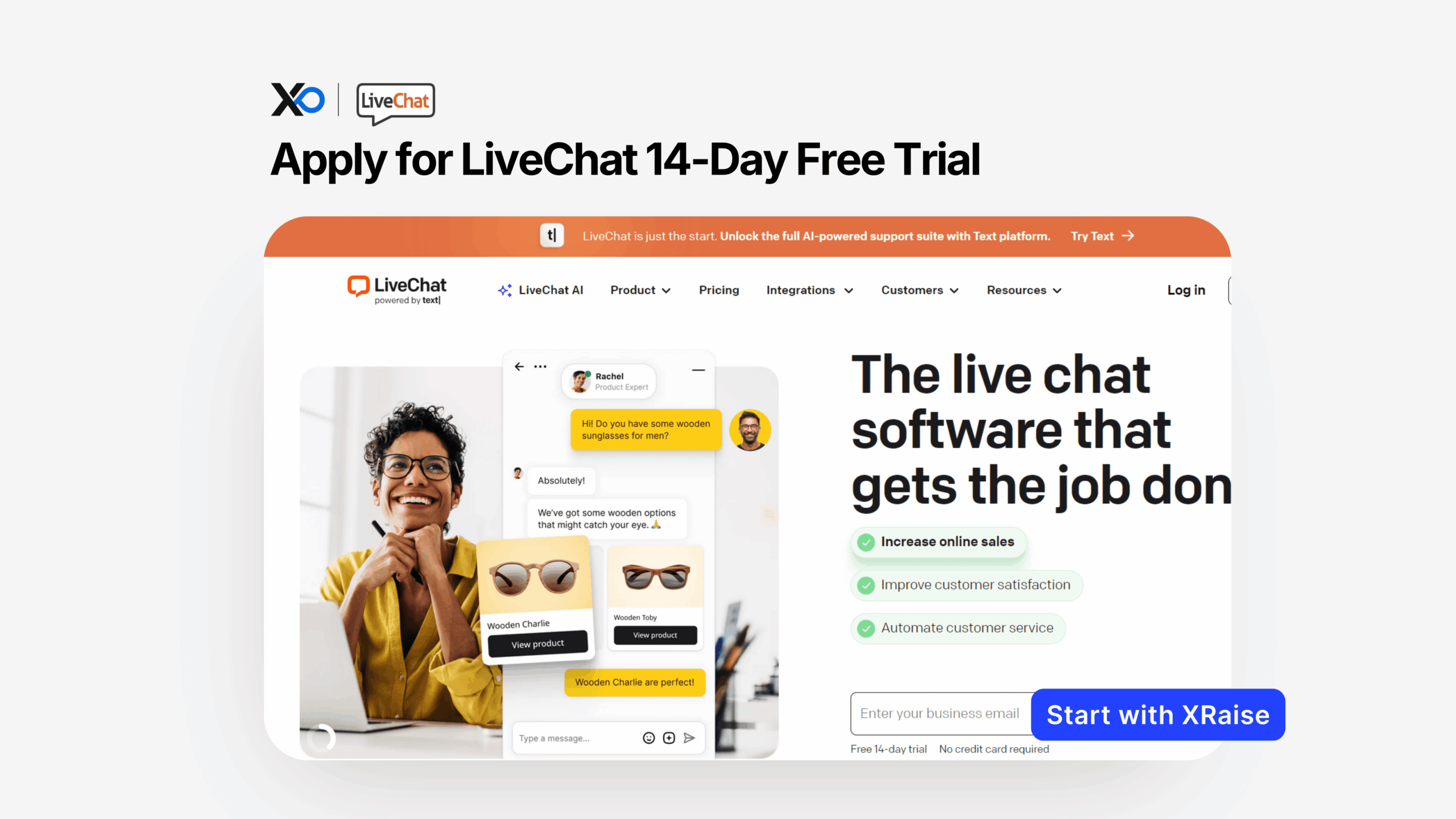 Through XRaise startup perks, you can access the LiveChat startup perk and activate a 14-day free trial with no credit card required.