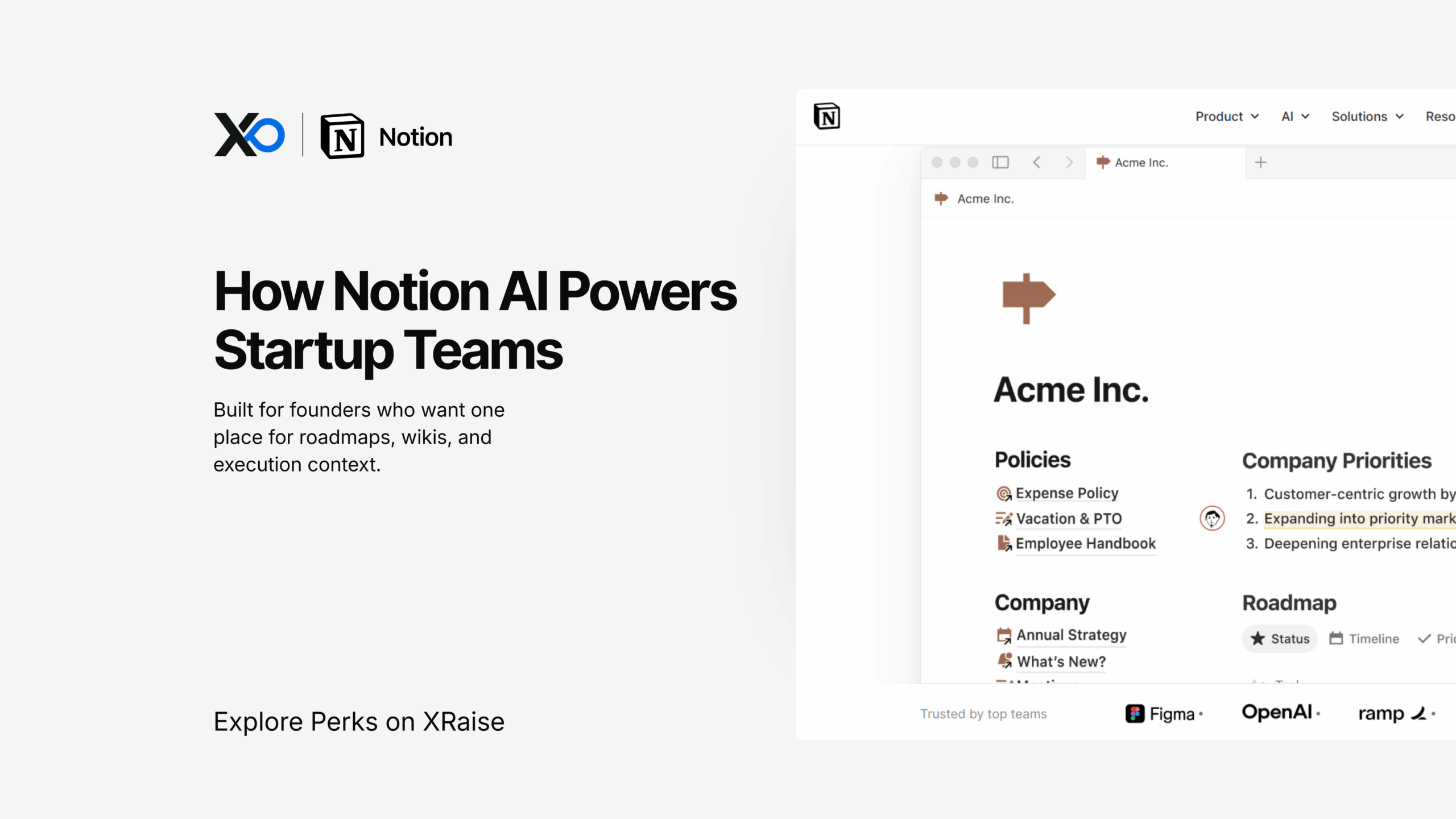 XRaise and Notion work together so eligible startups can unlock the Notion for Startups offer on XRaise. If you’re building a Notion AI workspace as your team’s operating layer, this is the cleanest way to start on the Business plan without paying full price upfront.