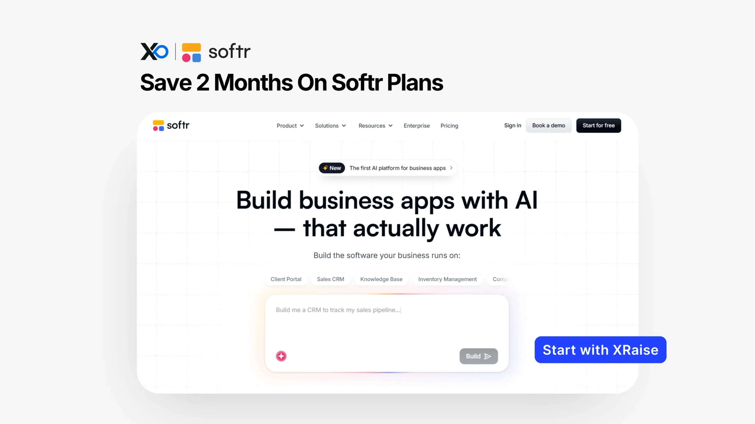 Use the XRaise perk page first, then verify pricing and terms on Softr’s official pages.